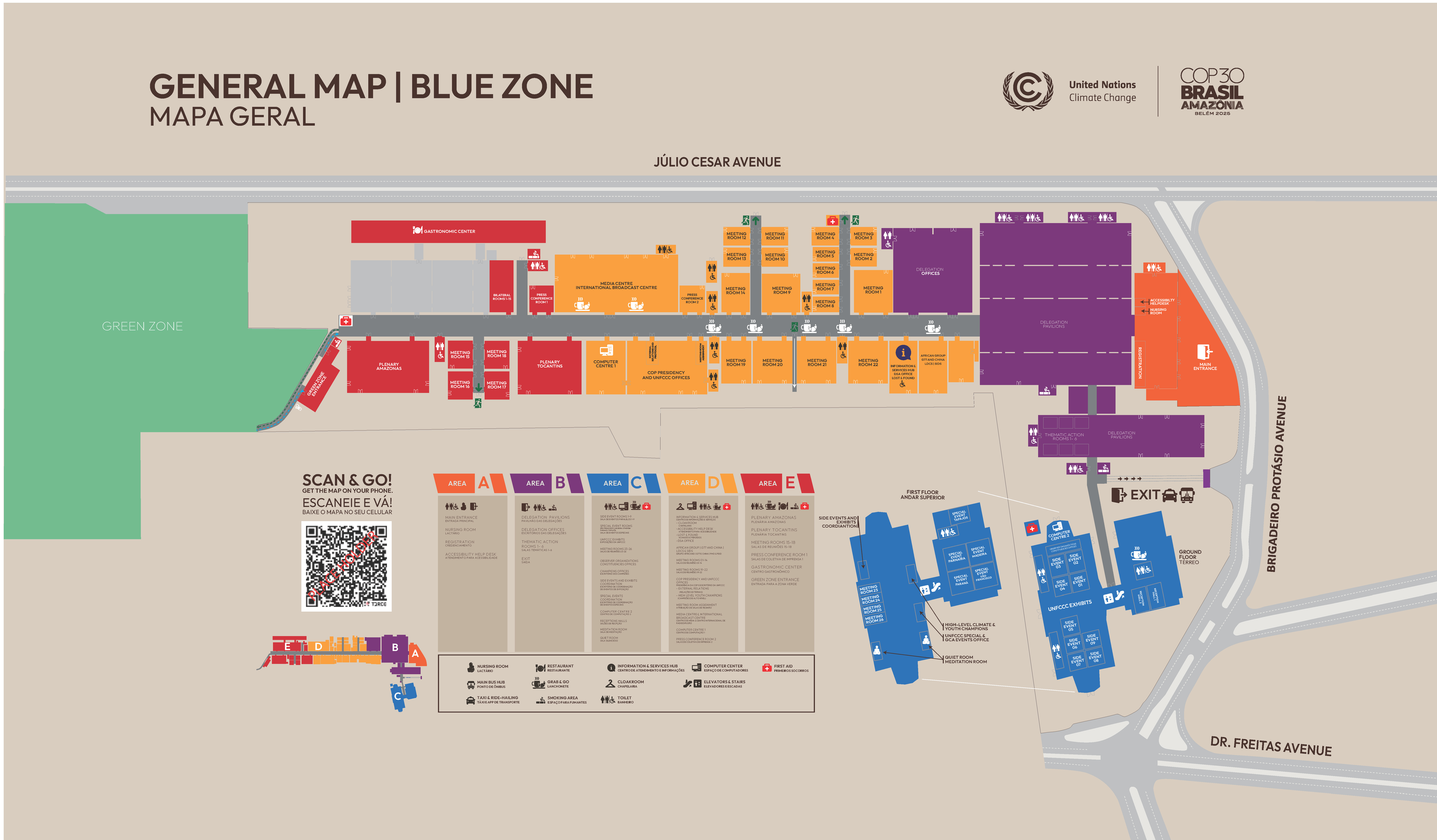 • E (red) – Plenary Amazonas, Plenary Tocantins, Green Zone entrance